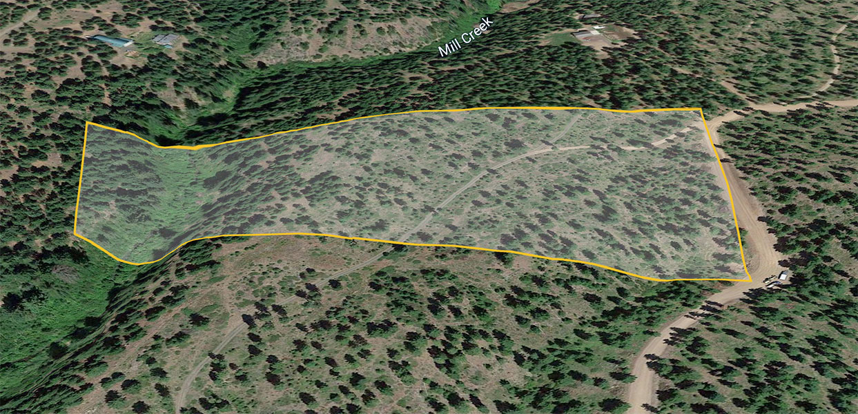 Rare Mill creek frontage, with useable trail to creek. Property is well stocked with Fir and Pine trees. 5 acre zoning.